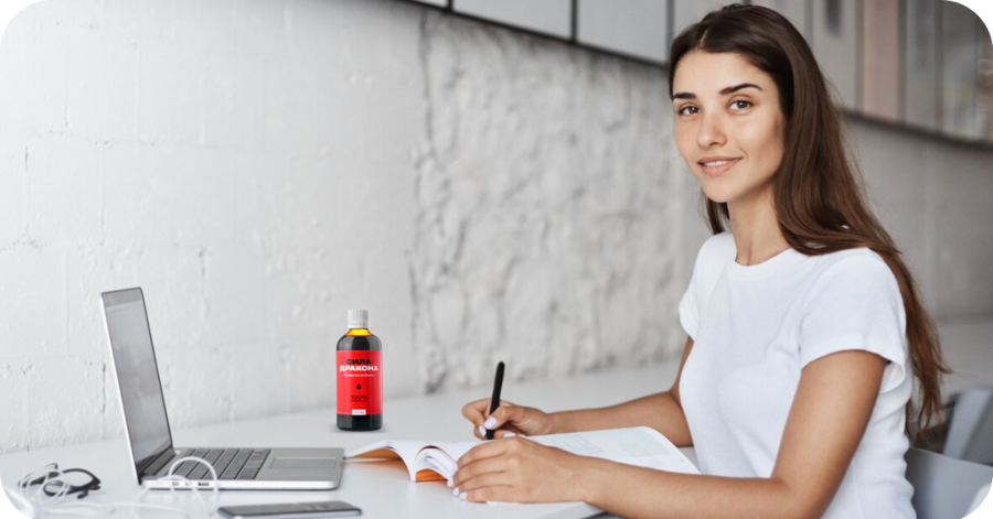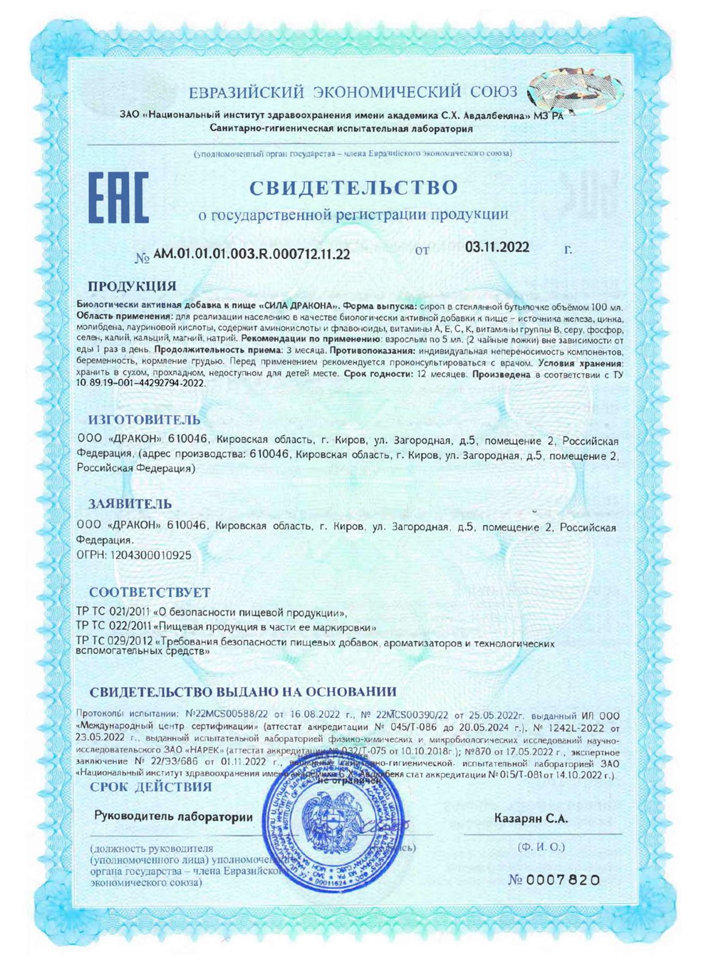аминокислотный комплекс 294,55 мг; Омега 3,6,7,9; лауриновая кислота 65,94; меланин-145,40; железо - 123,6 мг; цинк - 78,8 мг; молибден - 3,2 мг; сульфаты серы - 11,3 мг; фосфаты фосфора - 199,2 мг; селен - 0,015 мг; калий - 76,3 мг; кальций - 28,2 мг; магний - 95,8 мг; натрий - 7,1 мг; флавонойды – 303,7 мг; витамин A - 0,03 мг; витамин E - 1,1 мг; витамин C - 146,3 мг; витамин K - 0,14 мг; витамины группы B (B1,В2,В3, B5, B6,В7,В9, B12) - 1,4 мг; витамин D; массовая доля этилового спирта- не более 1,2 %.